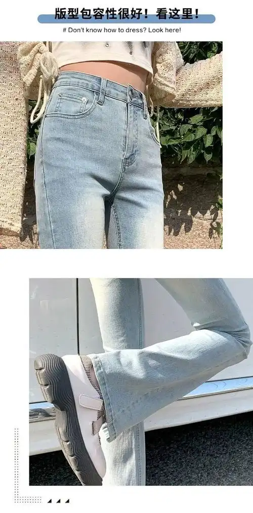 浅色复古微喇牛仔裤女春夏季高腰显瘦紧身九分小个子喇叭裤子长裤