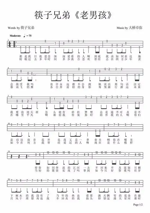 老男孩筷子兄弟尤克里里弹唱曲谱