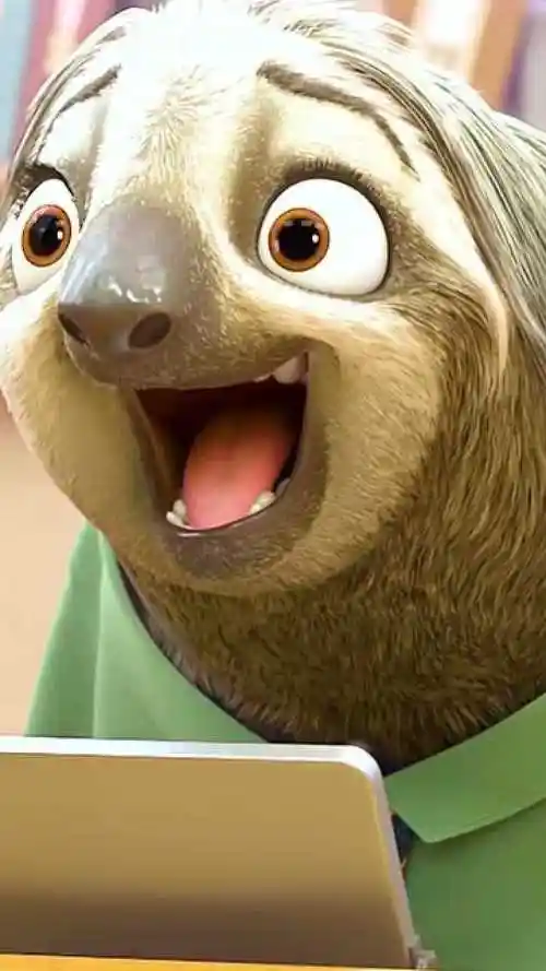 在《疯狂动物城》中,反射弧超长却名叫"闪电"的树懒成为上周末的网红