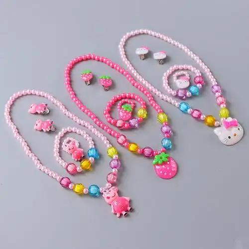韩版儿童珍珠项链手链套装女小公主串珠卡通女孩百搭首饰品