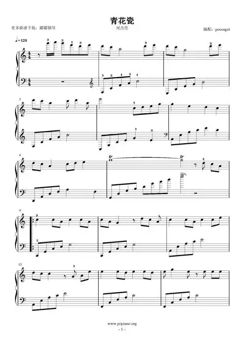 青花瓷五线谱预览1