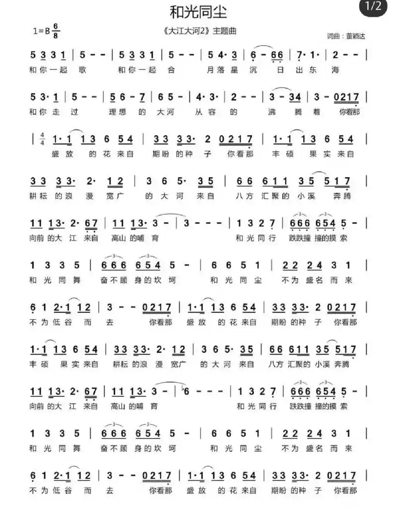 和光同尘钢琴数字简谱你看那盛放的花儿来自期盼的种子大江大河2主题