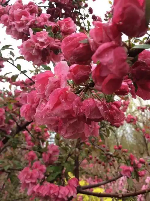 这种红色复瓣品种的海棠花,虽然无法结出果实,但它绚丽的
