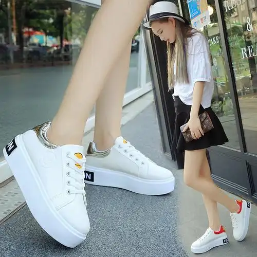 2016秋季百搭小白鞋女系带板鞋厚底韩版白色运动休闲鞋女鞋学生潮