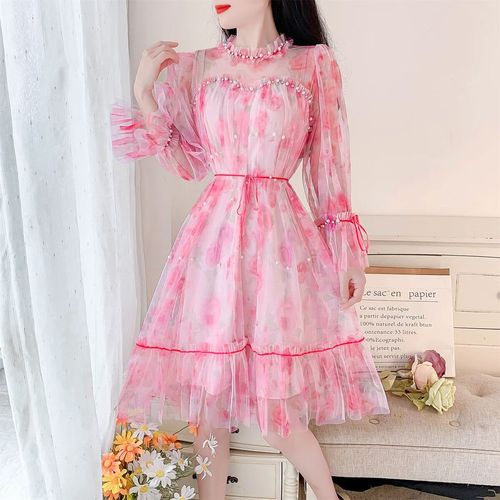 000人付款淘宝粉红色半身裙纱裙超仙2019夏季雪纺网