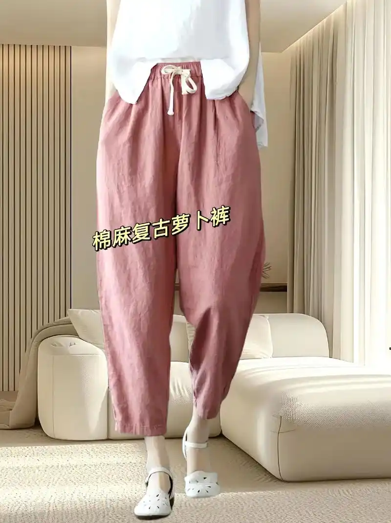 天丝亚麻宽松休闲萝卜裤!