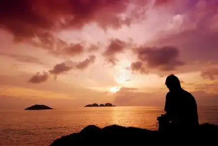 一个人坐在海边看海的图片