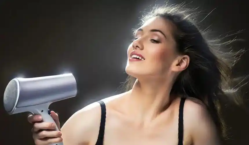 美女使用吹风机吹头发