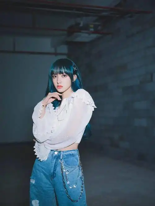 程潇综艺节目造型look,粉色与蓝发相配中和以白色,整体和谐美好