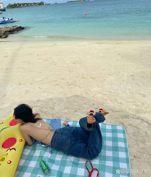 周雨彤在马尔代夫玩的好开心,穿上泳装还是很可以的