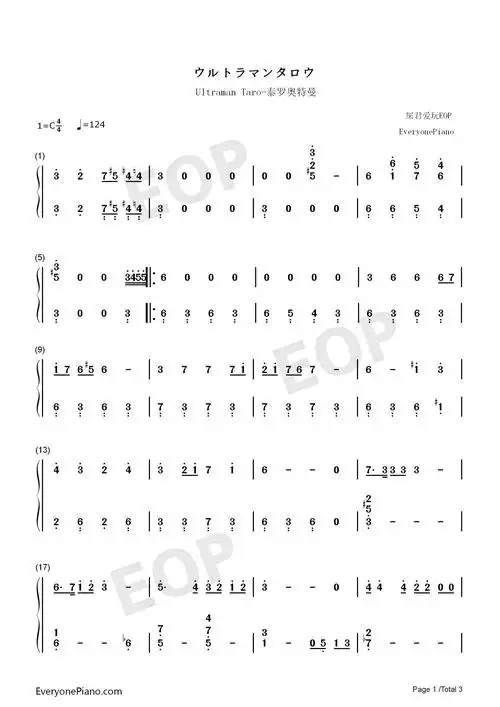 ウルトラセブンの歌-赛文奥特曼主题曲双手简谱预览2