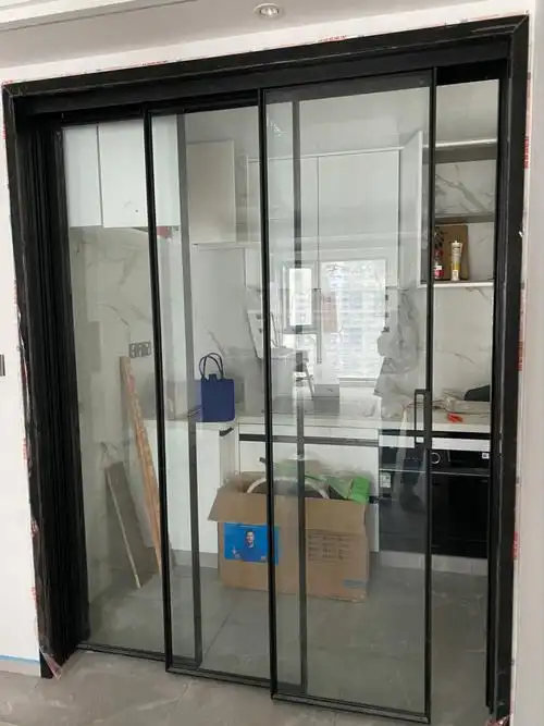 移门三联联动钛合金黑色窄框细边厨房客厅隔断厨房门