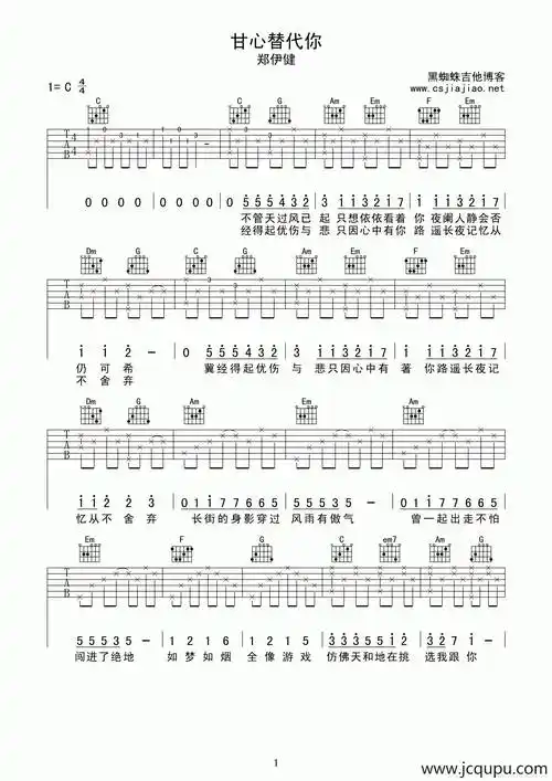 郑伊健郑伊健甘心替代你吉他谱