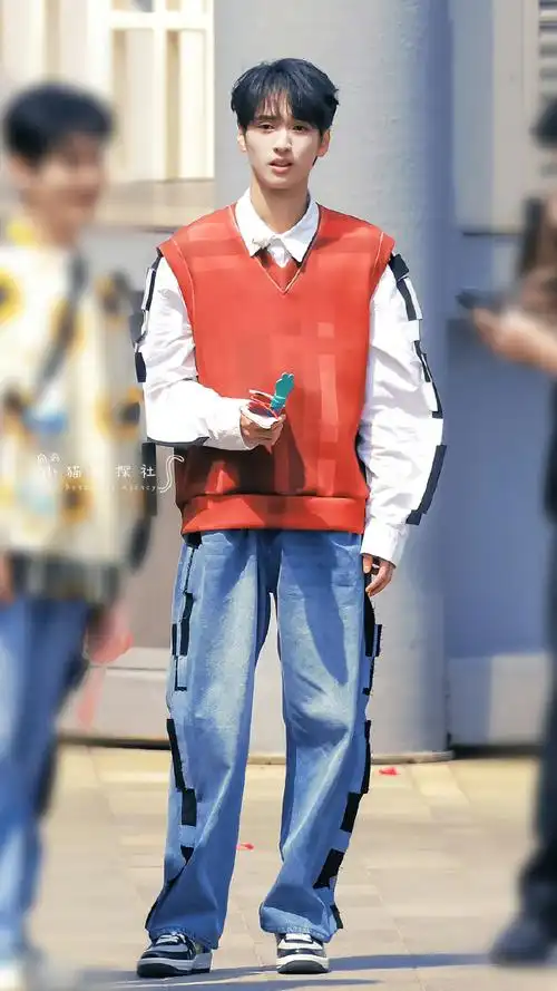 严浩翔牛仔套装三宫格##严浩翔牛仔套装校外随拍