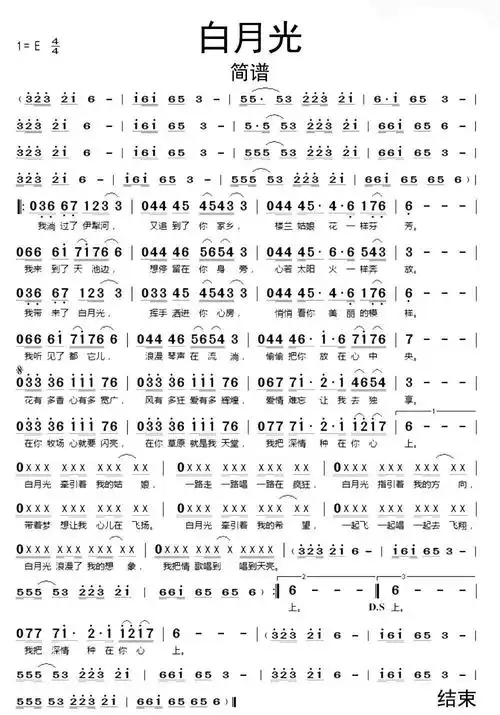 白月光简谱_白月光简谱歌谱