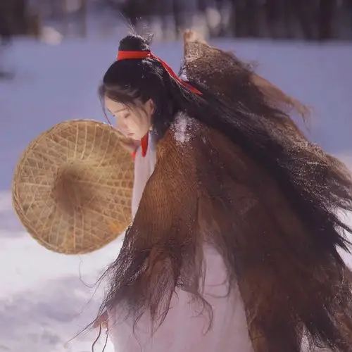 抖音热门古风黑衣的官家古代小姐与戴斗笠蓑衣的农家千金头像图片