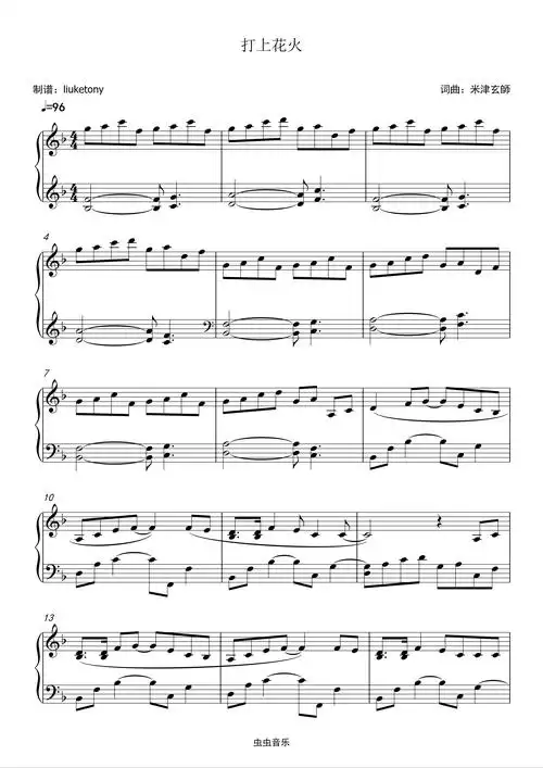 打上花火(打ち上げ花火)米津玄师钢琴谱-昙花一现-虫虫钢琴