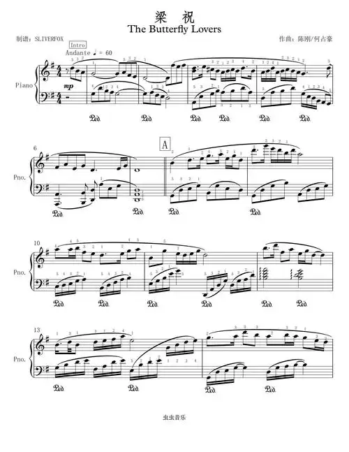 钢琴曲梁祝五线谱