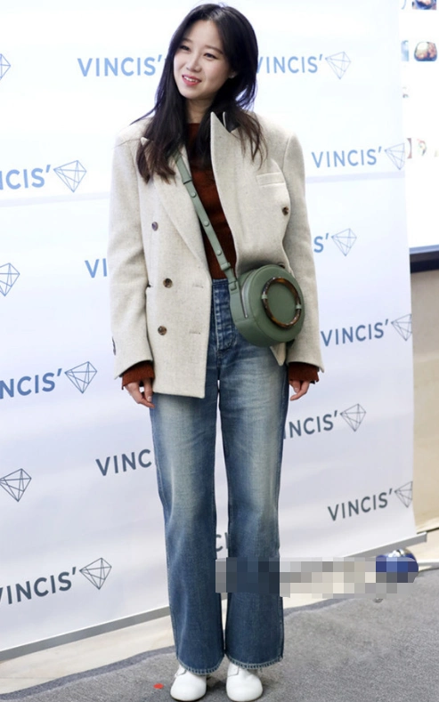 牛仔长裤,很是简约,但是给人一种非常清爽舒适的感觉,孔孝真的穿搭和