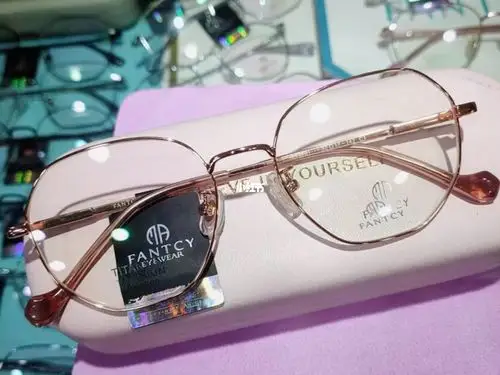 范特西超轻纯钛 近视眼镜框架 多边形 玫瑰金镜框 黑框眼镜