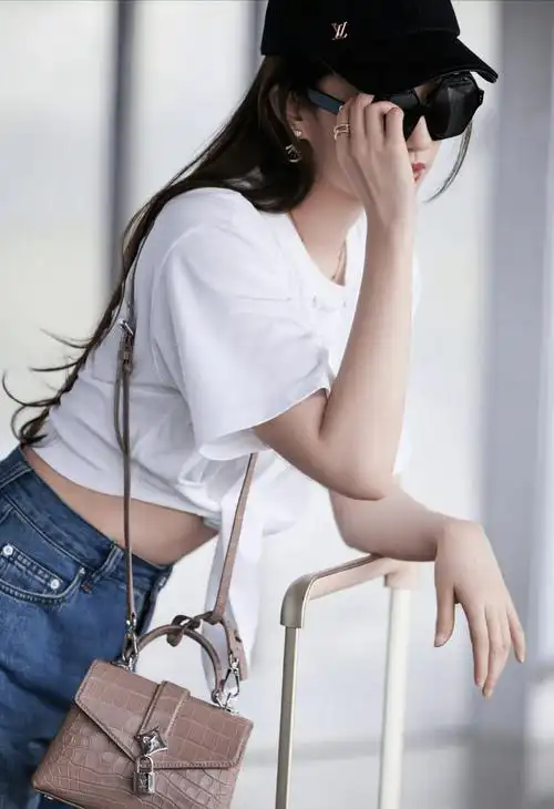 刘亦菲最新机场饭拍 白t搭配牛仔裤造型,露腰造型也太绝了吧!