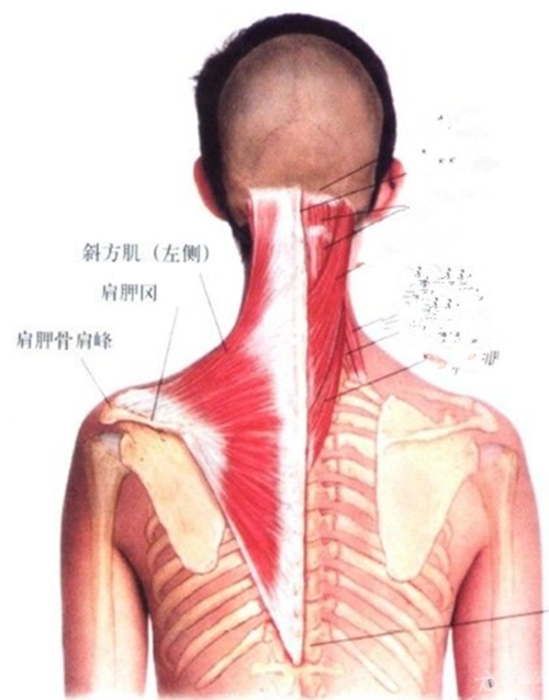 位置:在颈部和背上部皮下,一侧成三角形,两侧合成斜方形,故称斜方肌.