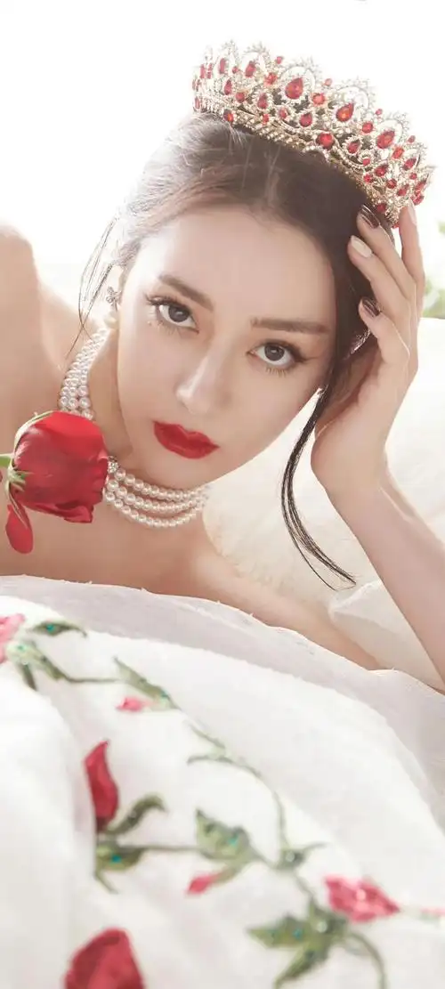 迪丽热巴白裙红玫瑰