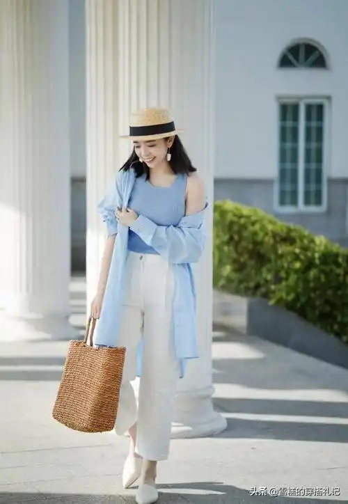 你还在依靠深色系的衣服去搭配,建议你最好尝试一下今年超火的白裤子