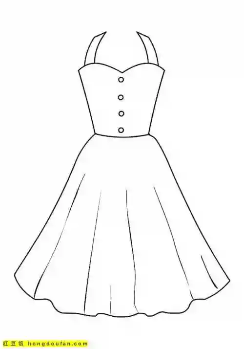 11张免费连衣裙长裙公主裙卡通涂色简笔画-红豆饭小学生简笔画大全