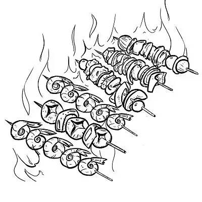 手绘黑白烧烤美食插画
