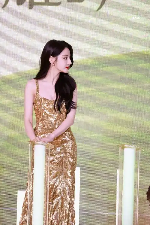 迪丽热巴出席活动,一袭抹胸开叉细闪钉珠长裙,美出新高度!