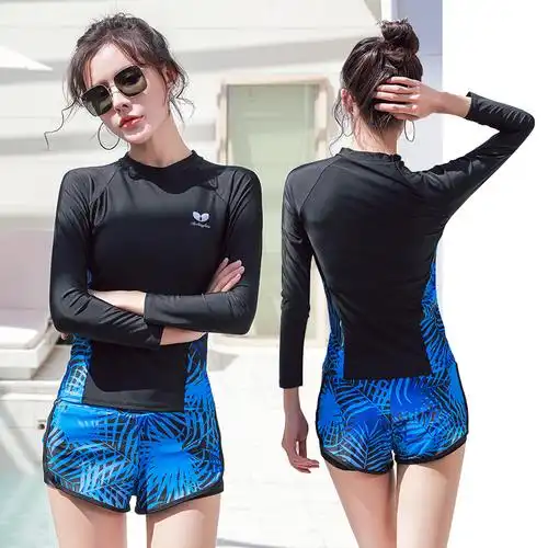 运动游泳衣女连体平角保守遮肚显遮温泉韩国大码2024训练学生泳装