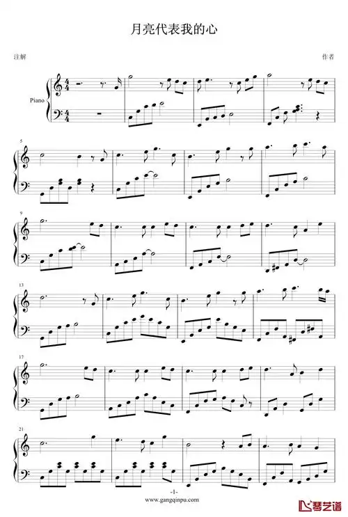 《月亮代表我的心,钢琴谱》翁清溪|弹琴吧|钢琴谱|吉他谱|钢琴曲|乐谱