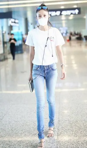 张蓝心saint laurent白色t恤 rene caovilla钻饰凉鞋低调时尚