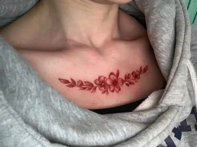 锁骨樱花纹身图片_胸部新传统纹身图案