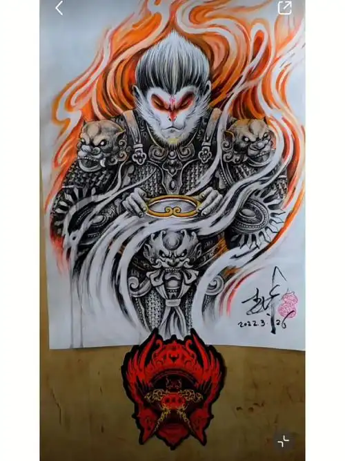 满背纹身猴子纹身手稿齐天大圣纹身图案