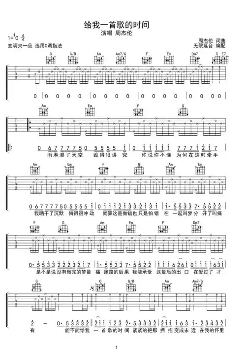 给我一首歌的时间吉他谱周杰伦c调原版编配视频教学