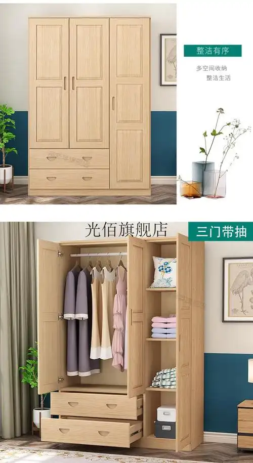 适用北欧现代简约开门三门衣柜实木经济型家用卧室柜子组装2门大
