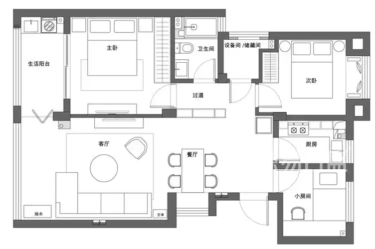 92平米三室两厅一厨一储卫生间三分离.#平面设计图 #室内设 - 抖音