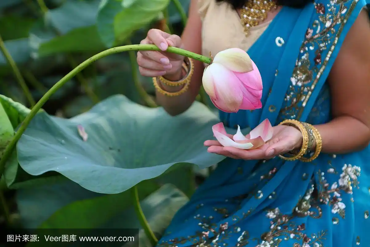 手捧荷花