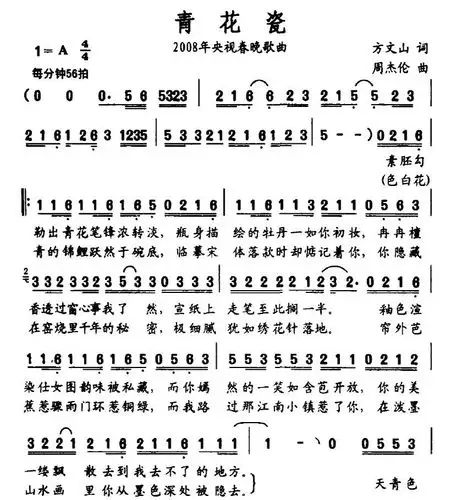青花瓷 钢琴谱 双手简谱 电子版 独奏 周杰伦 c调 数字谱 附音频
