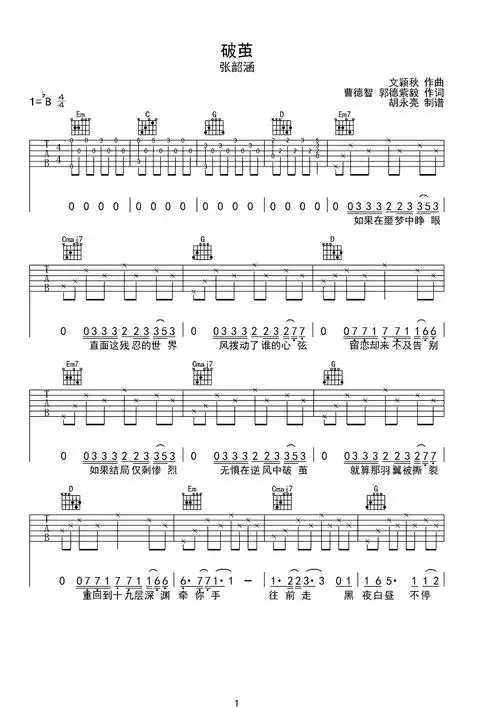 歌曲简谱张韶涵破茧免费高清歌谱简谱流行弹唱网