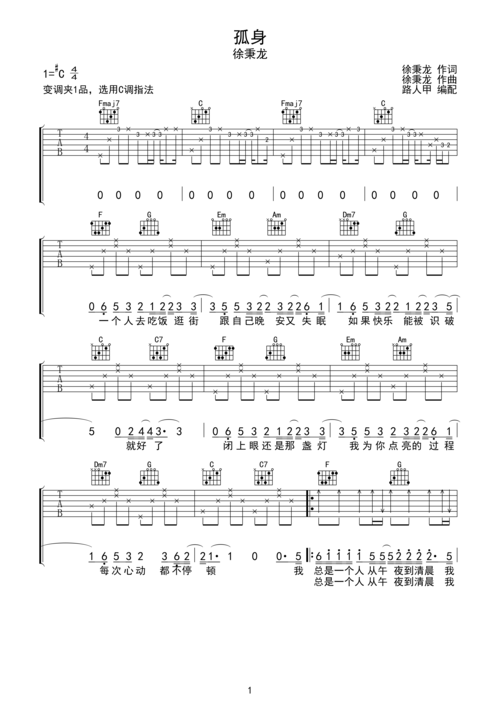 孤身吉他谱 c调简单版 徐秉龙1