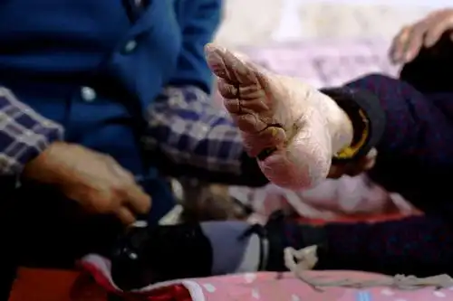 一名94岁的老太太裹了89年的小脚,通过画面不难看出,老人的脚掌严重