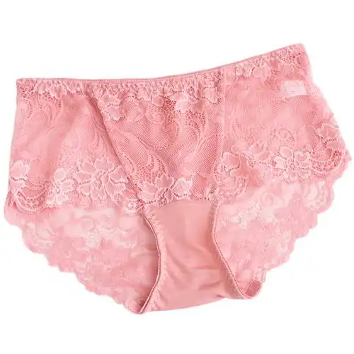 款真丝女内裤桑蚕丝性感蕾丝包臀薄款无痕舒适透气中腰平角裤 粉色 无