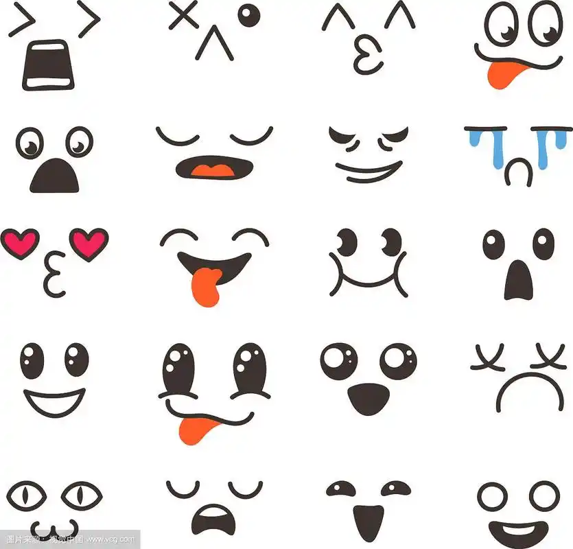 可爱表情符号矢量卡通情感特征与表情图解日本 emoji 表情的情感集合