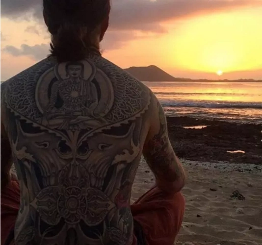 后背上的火焰 font color=red>狼人 /font>纹身图案