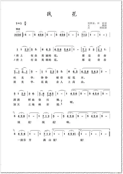《绒花》简谱