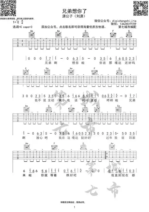 小阿枫《兄弟想你了》吉他谱_c调吉他弹唱谱