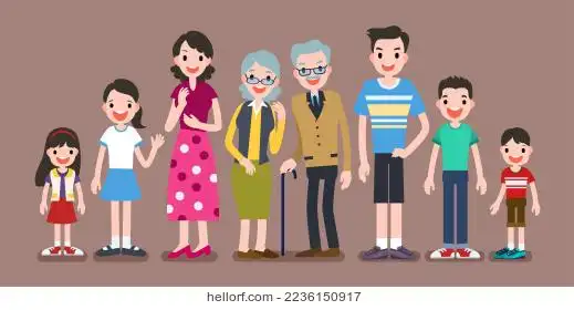 手绘卡通新年三代同堂全家福